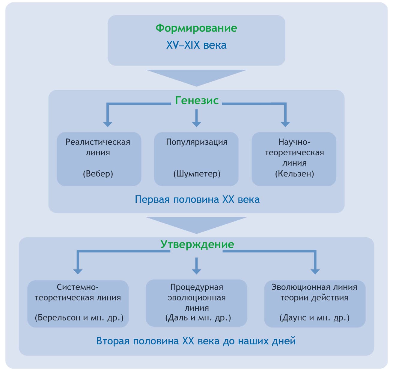 Рис. 3. Формирование, генезис и утверждение реалистической теории демократии