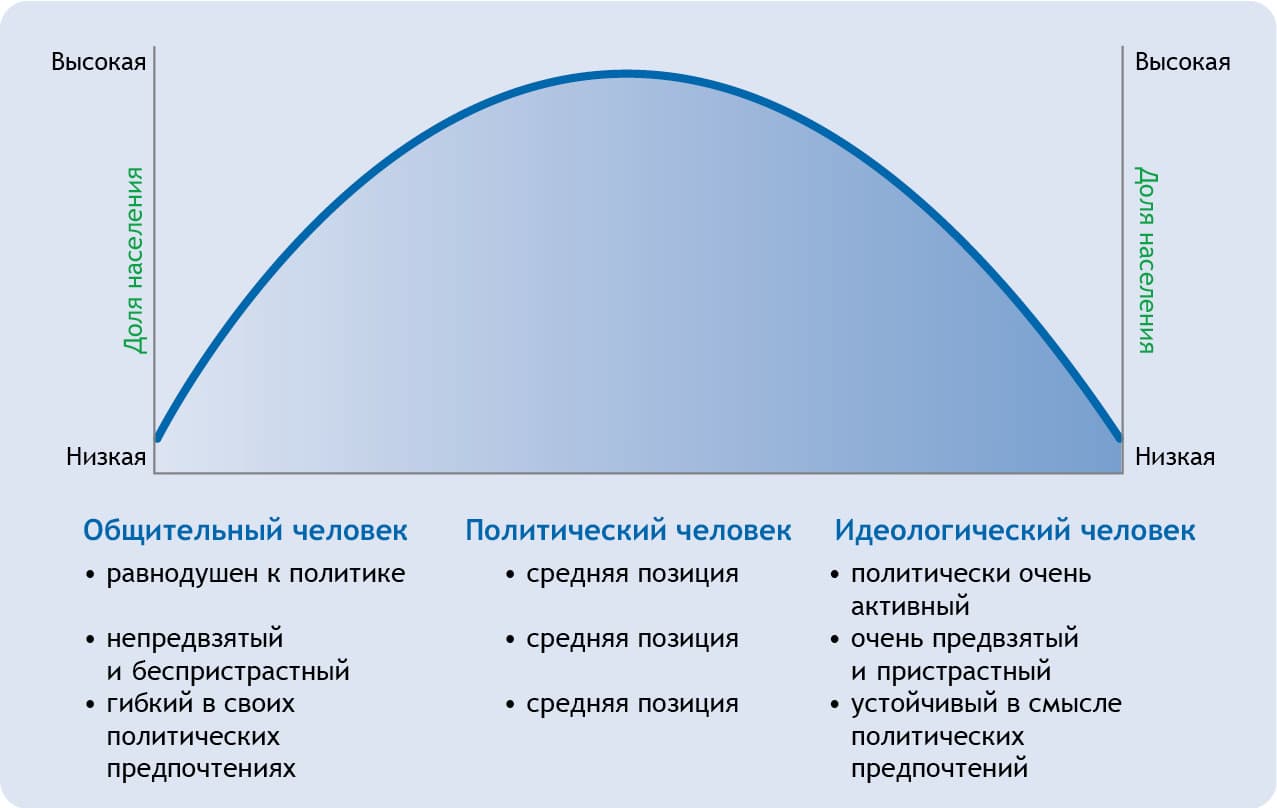 Рис. 47. Распределение типов избирателей в функционирующей демократической системе правления по Берельсону