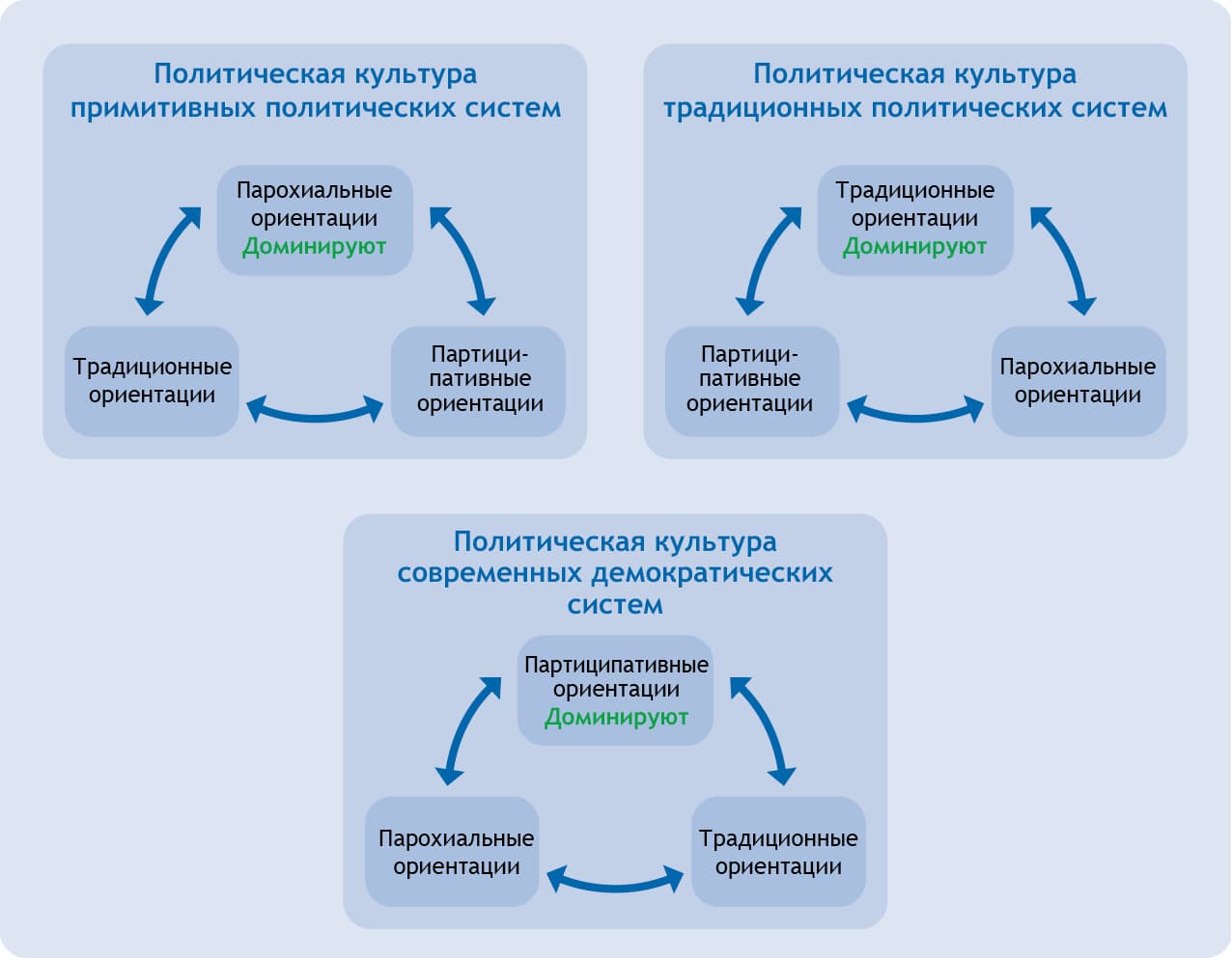 Рис. 49. Политическая культура в примитивных, традиционных и современных политических системах по Алмонду