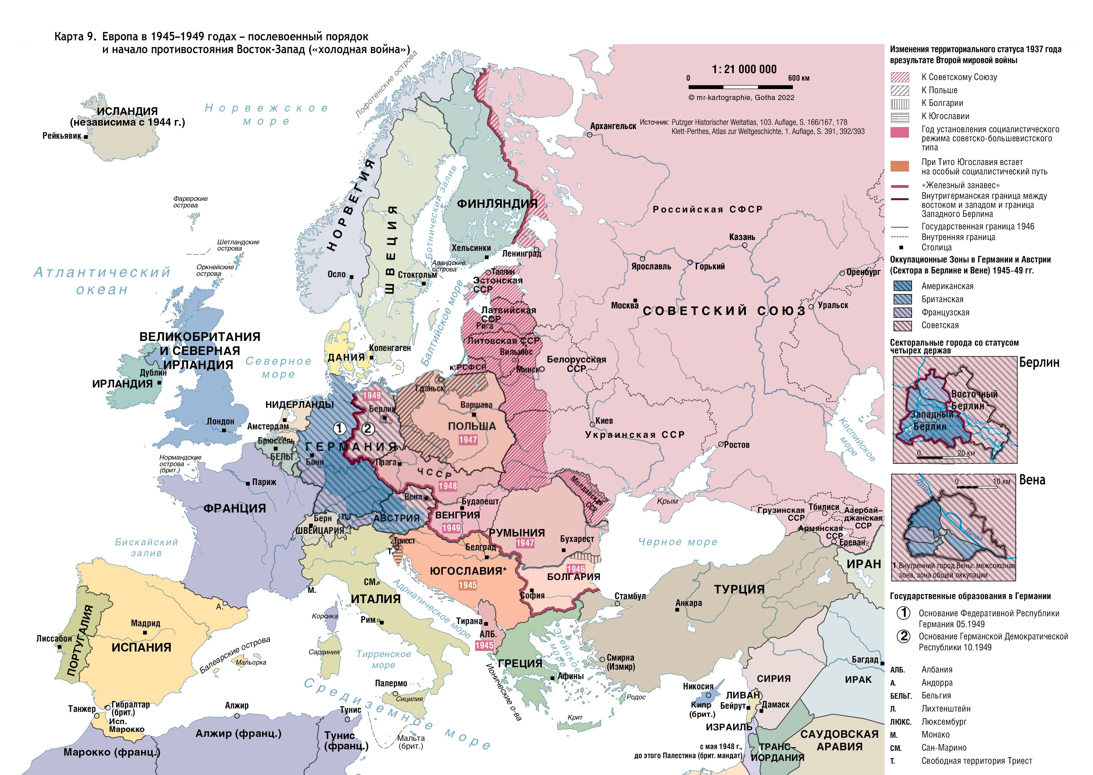 Карта 9. Европа в 1945–1949 годах — послевоенный порядок и начало противостояния Восток-Запад («холодная война»)