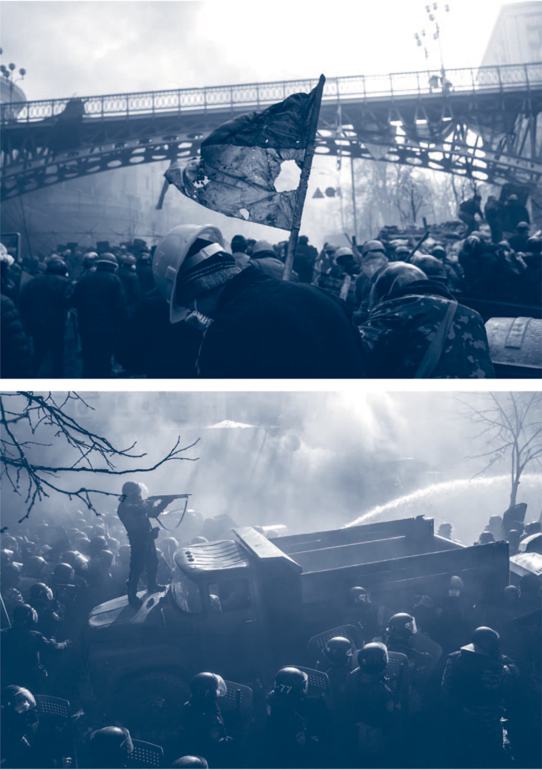 (1) Фото вверху/внизу: Массовые протесты против авторитарного режима Януковича в зимние месяцы 2013/2014 года в Киеве, Украина. © Максим Дондюк