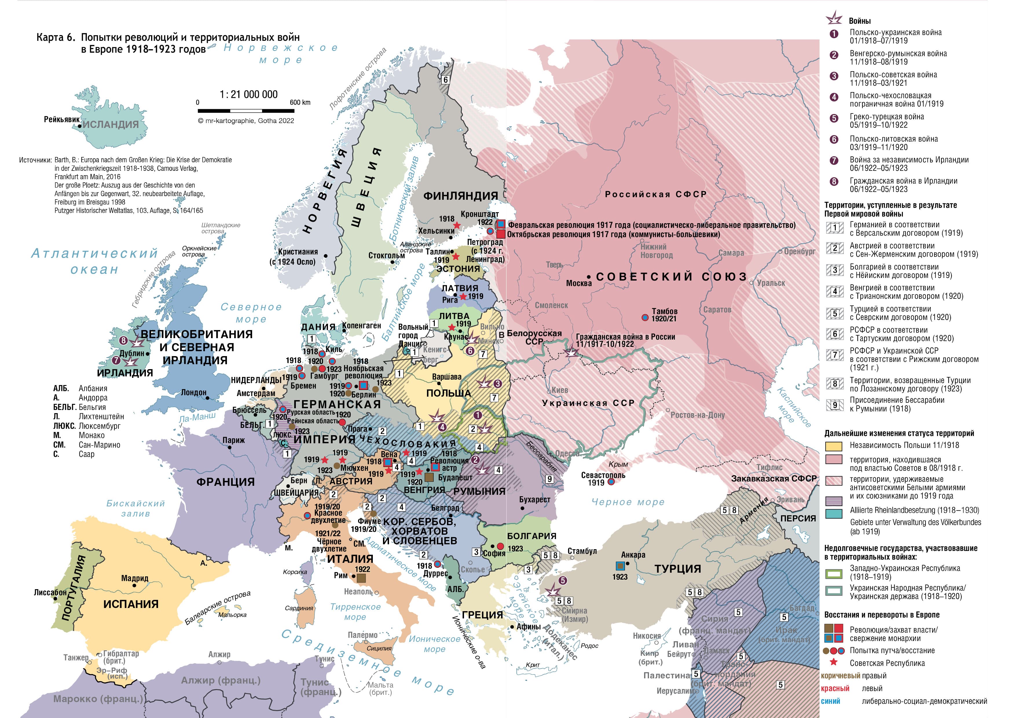 Карта 6. Попытки революций и территориальных войн в Европе 1918–1923 годов