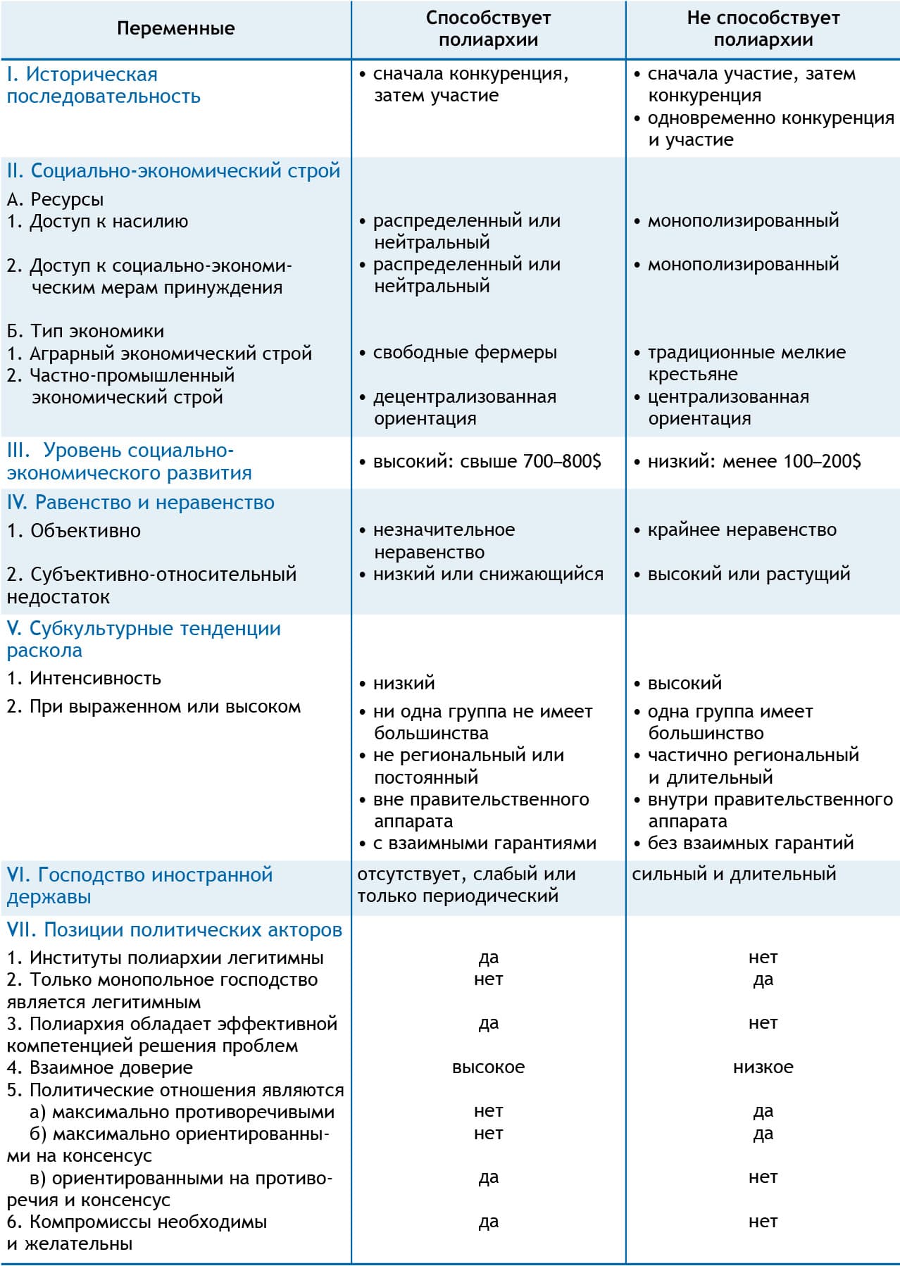 Рис. 57. Список семи переменных Даля, имеющих значение для сохранения/возникновения полиархии