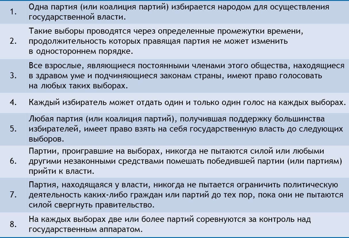 Восемь характеристик демократии по Даунсу#