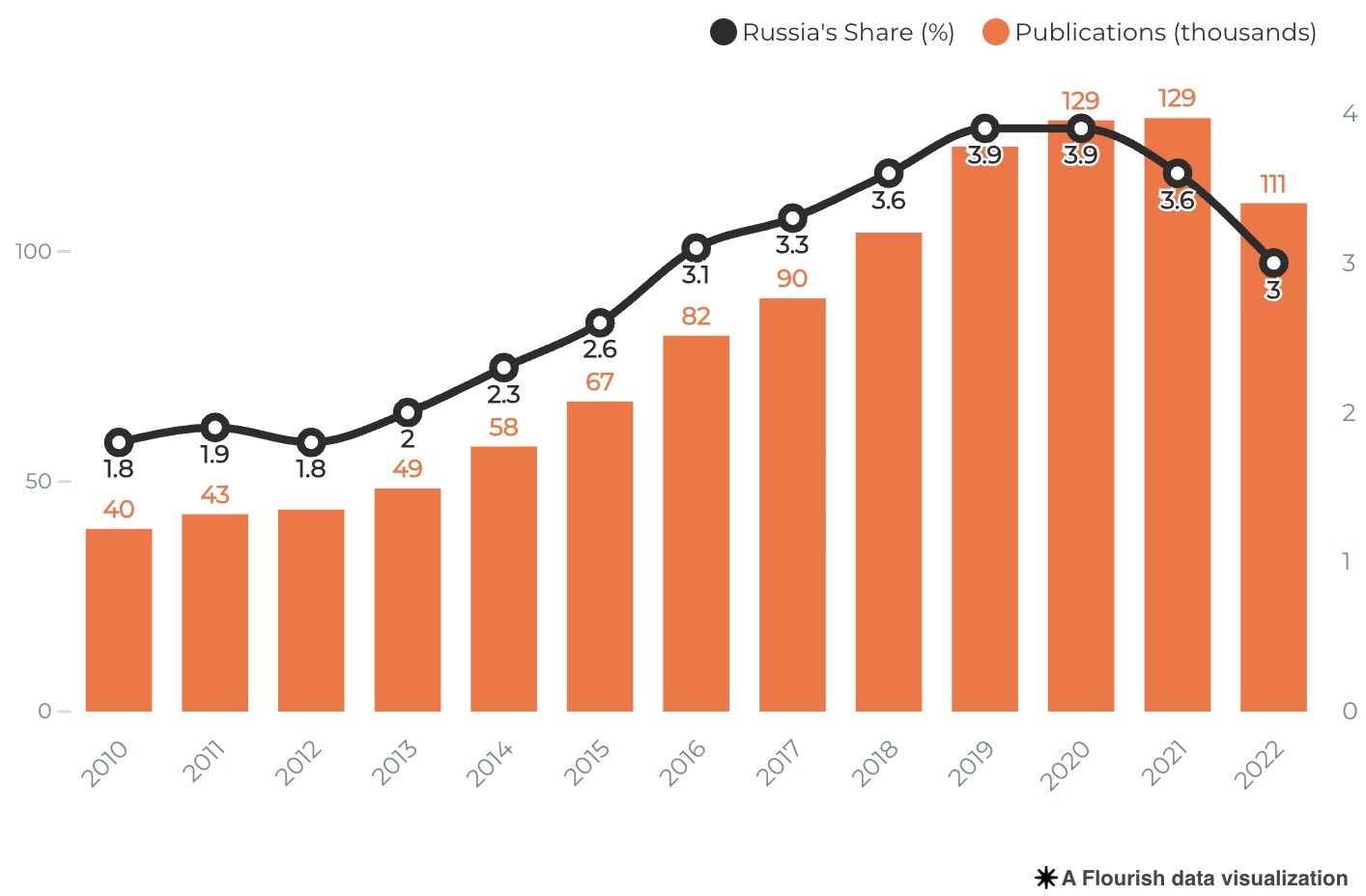 In April 2022, Russia was excluded from the Bologna Process and announced it would develop “its own, distinctive, nationally-based” educational system. The impact of the war on international publications is not yet highly noticeable, but studies show specific trends in censorship20 and self-censorship21 in the publication activity of Russian scholars.