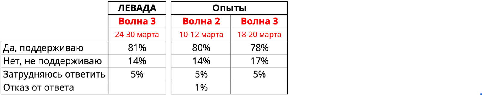 Высокие показатели и резкую динамику показывают практически все измерения. На начало операции цифры поддержки были в диапазоне 58–65%.