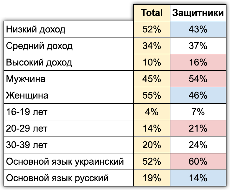 Украинцы: сегмент — «защитники»#