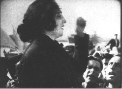 …Посмотрите на другой шиньон (у женщины на фото IX) — он противоречит поднятому кулачку, заглушает его, хотя нисколько не сказывается на символическом (интеллектуальном) значении кадра; завитушки прически придают лицу нечто овечье, делают облик женщины более трогательным (как может быть трогательной доверчивая наивность), даже чувственным16.