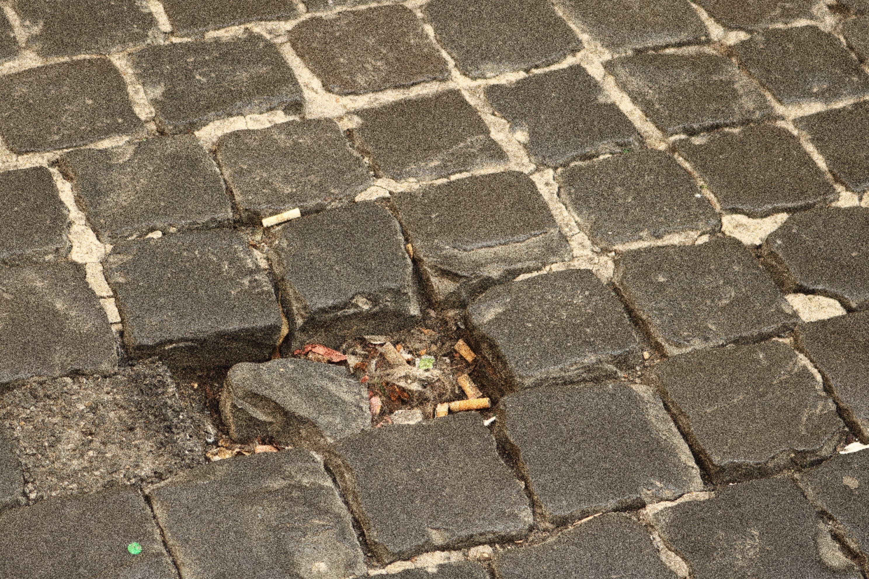 Кто-то осторожный подходит к камушку, чтобы избавиться от «нежелательного» выскочки, вытащив камень из мостовой, но это не решает проблему, вопрос зависает в воздухе (или брусчатке) сам по себе, являясь теперь не выпуклостью, а ямкой, удерживая дольше попавших в его западню. Камень по-прежнему остается там, вопрошая неосторожных в своей прямолинейно-римской манере: «Quo vadis?»